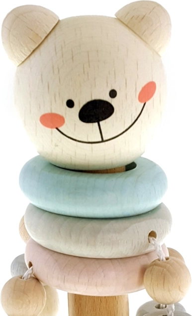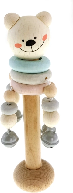 Il dolce sonaglino in legno a forma di orsetto con campanellini dal suono delicato farà felice ogni bebè. Il giocattolo colpisce per i colori pastello, favorisce la motricità fine ed è realizzato in legno certificato con colori ecologici e resistenti. 100% prodotto in Germania.