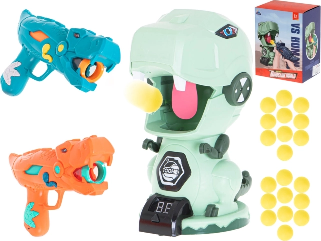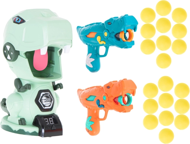 Due stilose pistole a forma di dinosauro consentono di sparare palline morbide in schiuma in modo sicuro ed efficace. Ideale per giochi in coppia e competizioni.