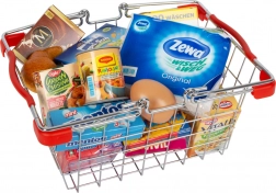 Questo grazioso ma robusto cestino della spesa in metallo SMALL FOOT è un ottimo complemento per tutti i negozietti e le cucine per bambini. È colmo fino all’orlo di riproduzioni in plastica di alimenti e prodotti di uso quotidiano, così i bambini possono allenarsi in modo realistico a fare la spesa, ordinare e servire. La selezione dei prodotti inclusi è variabile, per cui ogni confezione può riservare sorprese diverse.