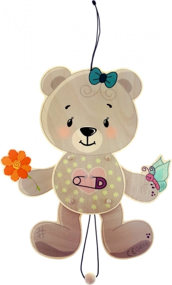 Questo orsetto appeso è un complemento ideale per ogni cameretta. È realizzato al 100% in legno di betulla, il che lo rende non solo resistente ma anche ecologico. Le sue parti mobili, che si attivano tirando una corda, offrono un divertimento infinito e sviluppano le capacità motorie dei bambini.
