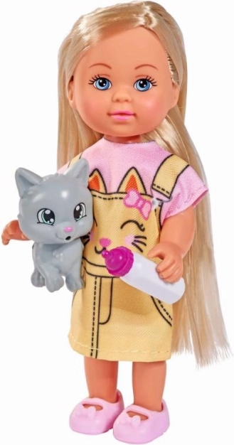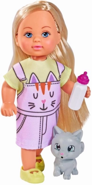 Scopri la magia dei giochi di cura con la bambola Evi Love, che indossa un abito con un allegro motivo di gattino. Ogni confezione include anche un tenero gattino e un biberon, grazie ai quali i bambini sviluppano facilmente fantasia, empatia e motricità fine.