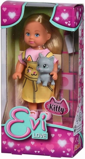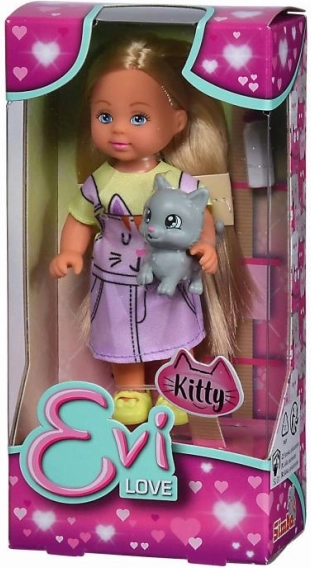 Ogni bambola Evi Love arriva con un gattino grigio per infinite storie di cura e coccole.