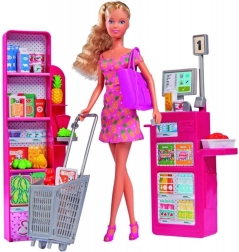 Scopri il mondo del gioco di ruolo con la Bambola Steffi Supermercato. Questa incantevole bambola ti accompagna in un fantastico scenario di shopping con una cassa, una borsa della spesa e tanti articoli alimentari per un divertimento senza fine.