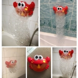 Questo simpatico granchio trasforma il bagnetto in uno spettacolo divertente pieno di bolle. Basta versare nel serbatoio estraibile una miscela di acqua e una piccola quantità di bagnoschiuma, premere il pulsante ON e il granchio inizierà a creare schiuma abbondante accompagnata da una piacevole melodia. Ideale per i bambini che amano l’acqua e anche per i piccoli contrari al bagnetto: il gioco li intratterrà di sicuro.