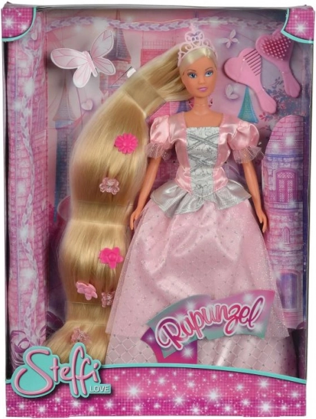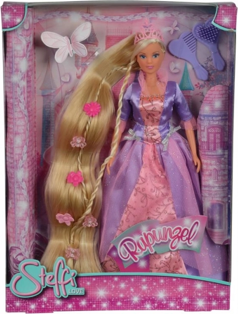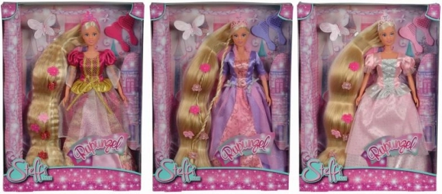 Scopri l'incantevole bambola Steffi Rapunzel, che puoi pettinare all'infinito. Questa bambola in abito da sera e con una corona scintillante offre straordinarie possibilità di stile per i capelli.