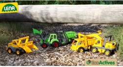 Scopri un modo ecologico di giocare con questo trattore attivo con caricatore frontale di LENA. Il giocattolo è realizzato in plastica riciclata con aggiunta di legno, è completamente funzionale meccanicamente e ha una cabina ribaltabile per una manipolazione facile. Ideale per bambini dai 2 anni per il gioco in casa e all’aperto.