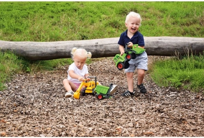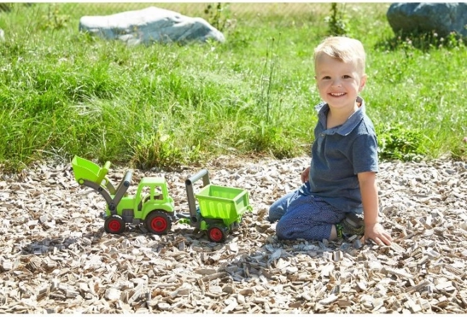 Il trattore LENA ECO unisce divertimento e rispetto per la natura. Grazie alla struttura robusta in materiali riciclati con aggiunta di legno è resistente e sicuro per i piccoli conducenti. Il caricatore frontale è completamente funzionale e consente di raccogliere e travasare materiali, favorendo la motricità fine e il gioco creativo.