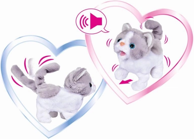 La dolce gattina interattiva in morbido peluche farà felice ogni bambino. Si muove con due velocità, scodinzola e emette suoni divertenti. Compagna ideale per il gioco quotidiano e per le coccole.