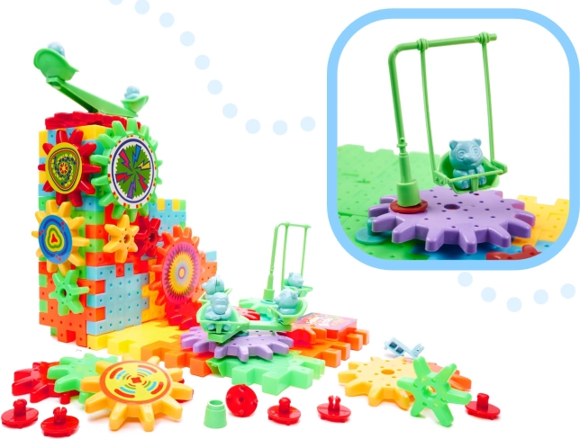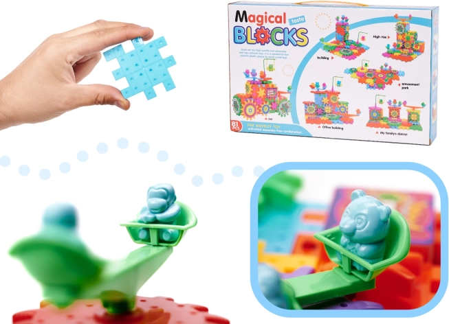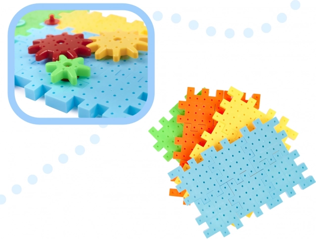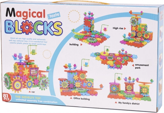 Con i blocchi Magical Block, il divertimento non avrà mai fine. Puoi essere sicuro che con questo set il tuo bambino non si annoierà. I blocchi a forma di ingranaggio sono progettati per offrire un grande divertimento sostenendo lo sviluppo corretto del tuo bambino. Durante la costruzione, il piccolo costruttore stimola la creatività, acquisendo capacità di pensiero logico e creativo e sviluppando abilità manuali. La varietà di elementi e colori offre infinite possibilità di costruzione.