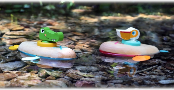 Il giocattolo d'acqua in legno è un'alternativa più sostenibile ai comuni giochi in gomma. Grazie ai materiali piacevoli e alle forme arrotondate è sicuro e si impugna comodamente anche dalle manine più piccole.