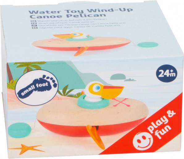 L'allegro pellicano in canoa del marchio SMALL FOOT si muove da solo sulla superficie grazie al meccanismo a carica. La combinazione di legno e plastica di qualità garantisce resistenza e lunga durata. Ideale per la vasca e per la piscina, sviluppa la motricità fine e la comprensione di causa ed effetto.