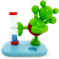 La clessidra è realizzata in legno naturale non trattato e si distingue per la struttura robusta e i colori vivaci. Grazie alle dimensioni compatte di 12 cm, si adatta facilmente al lavabo o alla mensola del bagno.
