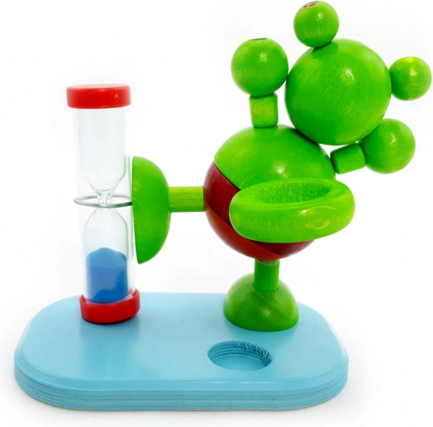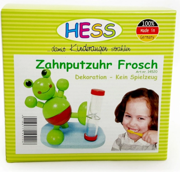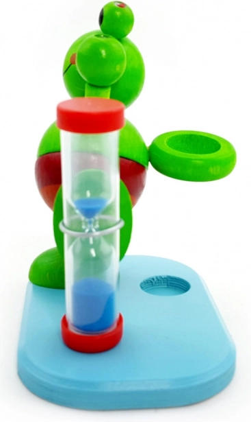 La graziosa clessidra a forma di rana trasforma lo spazzolamento dei denti in un rituale divertente. L’intervallo di due minuti aiuta i bambini a rispettare il tempo consigliato di pulizia, mentre il pratico portaspazzolino mantiene tutto a portata di mano e in ordine.