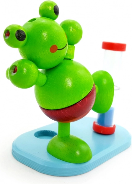 Il supporto integrato dietro la figurina della rana mantiene lo spazzolino sempre a portata di mano e in ordine.