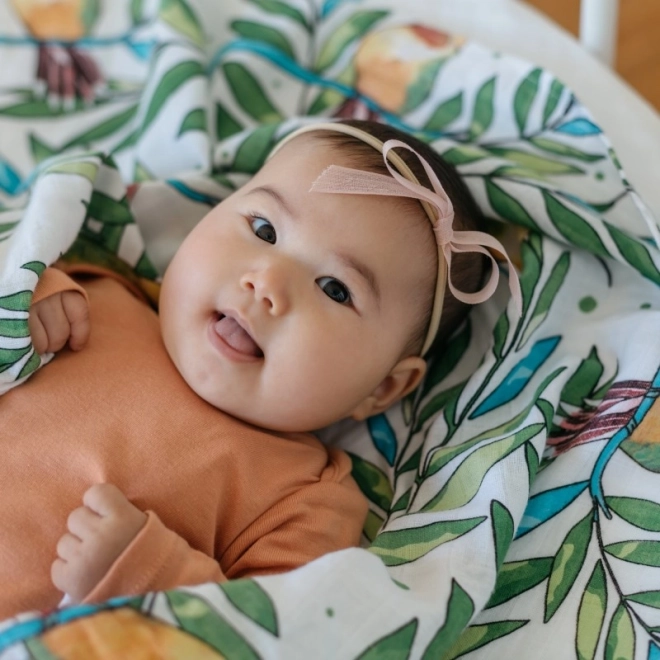Mussola Tommy Lise è realizzata in cotone biologico 100% di prima qualità. È delicata, traspirante e leggera, ideale per la pelle sensibile del tuo bambino.