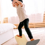 La forma arcuata della tavola attiva in modo naturale i muscoli stabilizzatori e migliora la postura. Adatta a bambini dai 3 anni e ad adulti per il movimento quotidiano.