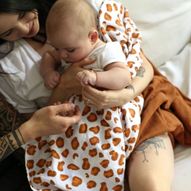 Grazie alle generose dimensioni 120 × 120 cm è ideale per avvolgere, coprire e per la cura quotidiana in casa e in viaggio. Il motivo elegante leopardo bianco piacerà ai genitori che cercano un accessorio pratico dal design moderno.