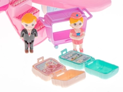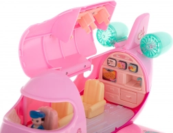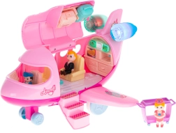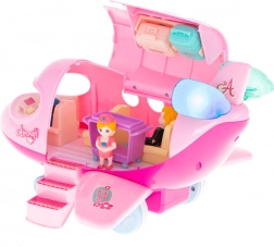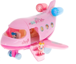 Premendo i pulsanti, emette suoni noti dall'aeroporto reale, inclusi l'atterraggio. Si illumina con LED colorati. Inoltre, l'aereo suona una melodia. Il veicolo è dotato di ruote mobili. In attesa dei passeggeri c'è il pilota. Salirà a bordo un elegante viaggiatore e una hostess. Durante il volo, oltre alle viste spettacolari dal finestrino, è assicurato uno snack che verrà consegnato con un carrello speciale. Senza bagaglio, naturalmente, non puoi viaggiare, quindi il set include due valigie apribili con maniglie rimovibili.