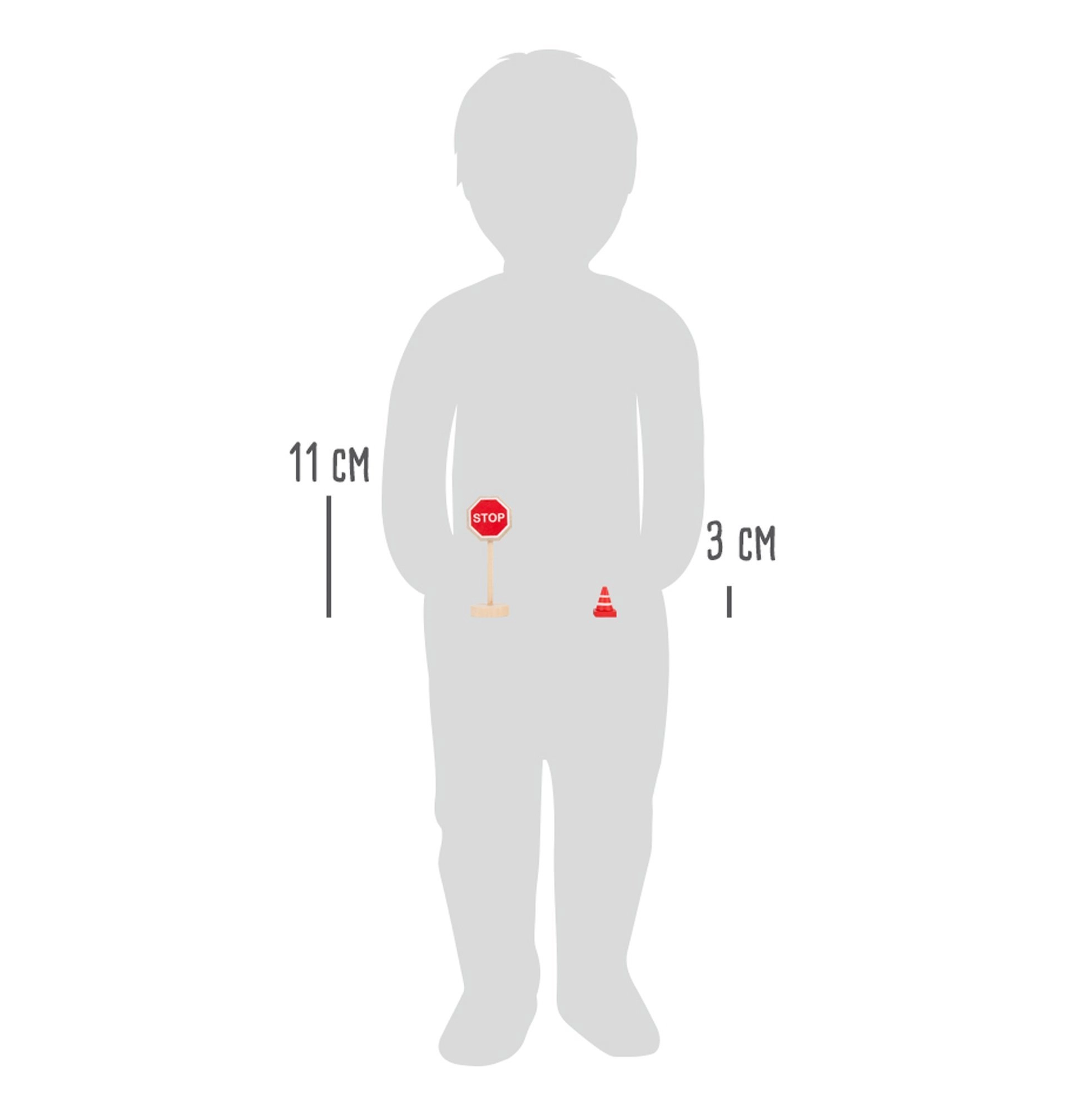 Ampia selezione di cartelli, coni, barriere e semaforo per scenari di traffico realistici e gioco educativo.
