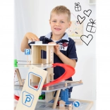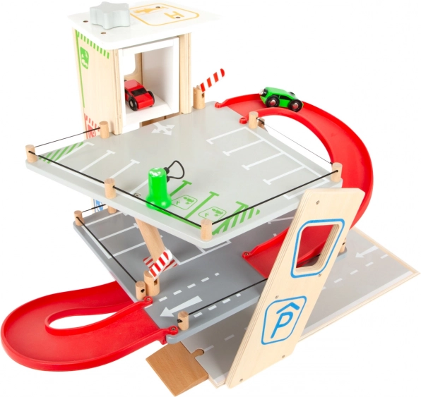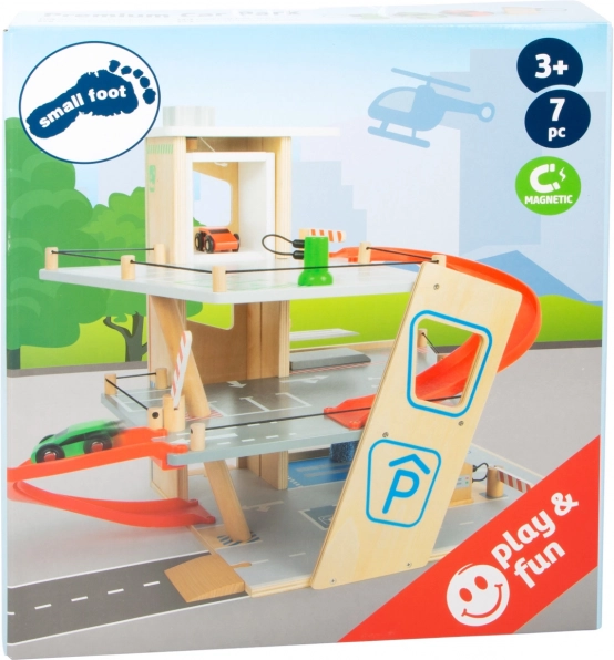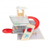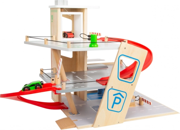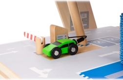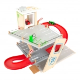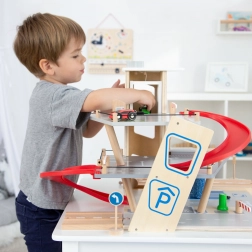 Scoprite un robusto parcheggio in legno a tre piani, con ascensore funzionante e rampe scorrevoli per infinite gare con le macchinine. Inclusi due veicoli, stazione di rifornimento, colonnina di ricarica per auto elettriche, rampa sollevabile, realistico autolavaggio con spazzole e sbarre meccaniche a ogni piano. La guida sicura è garantita da un parapetto in gomma e dalla segnaletica dettagliata che sviluppa la consapevolezza del traffico.