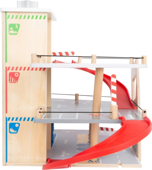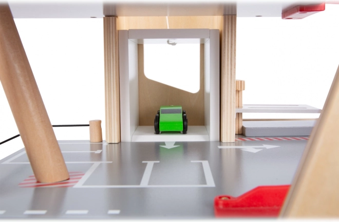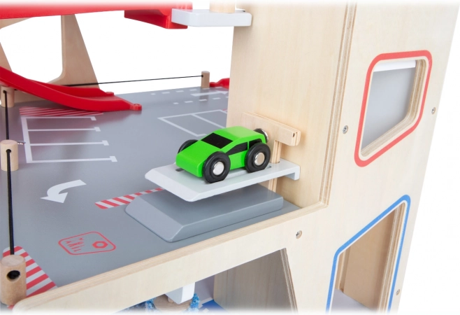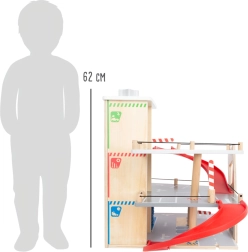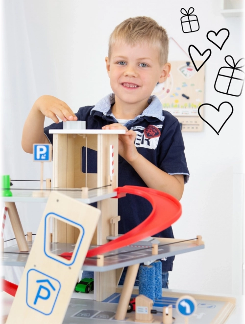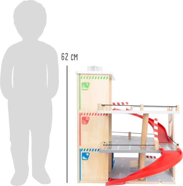 Questo parcheggio premium in compensato di qualità offre tre piani riccamente attrezzati collegati da un ascensore funzionante e da due rampe scorrevoli. I bambini possono parcheggiare, fare rifornimento, ricaricare, lavare e persino riparare – tutto in un unico posto, con elementi realistici e un’ottima giocabilità.