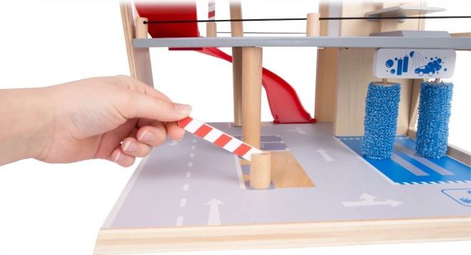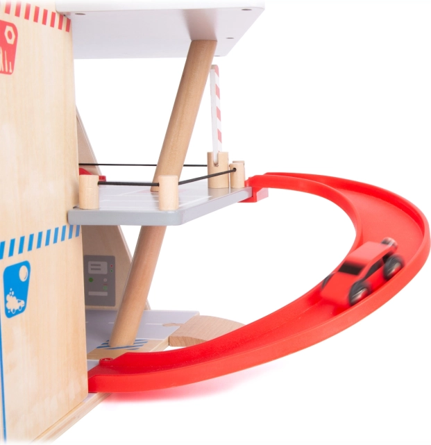 L’autolavaggio con spazzole rotanti dona realismo al gioco, mentre il parapetto in gomma ai piani impedisce la caduta delle macchinine e aumenta la sicurezza durante la guida.