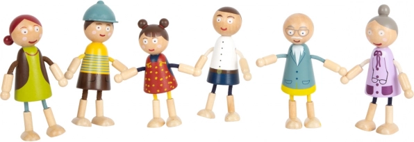 Con queste figurine in legno di Small Foot puoi facilmente animare la tua casa delle bambole. Le figurine sono realizzate in legno di qualità e hanno parti flessibili che permettono di posizionarle in diverse pose. Il set include mamma, papà, nonna, nonno, fratello e sorella, tutte perfettamente adattate alle mani dei bambini.