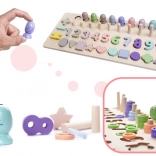 Il divertente gioco educativo in legno 2 in 1 unisce l'inseritore di forme e cifre, l'abaco con anelli 1–10 e il gioco magnetico di pesca. Aiuta i bambini a imparare colori, forme e le prime nozioni di calcolo, allenando la motricità fine e la concentrazione. Il legno di qualità e i colori piacevoli invitano alla scoperta quotidiana.