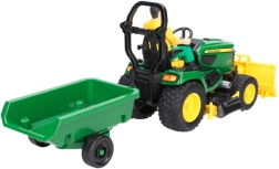 Il pratico rimorchio ribaltabile amplia le possibilità di gioco – trasporta attrezzi, materiali o l'erba tagliata e svuotalo facilmente grazie al ribaltamento. Ideale per lunghe ore di divertimento creativo.