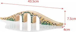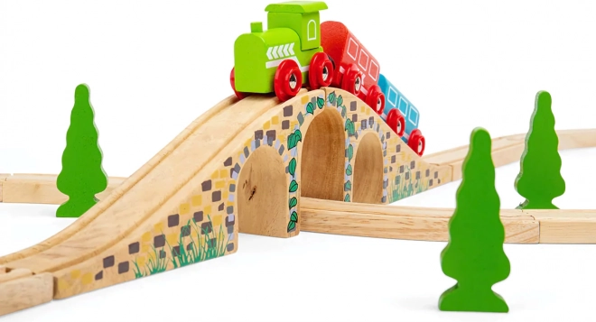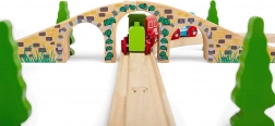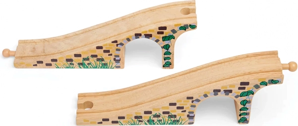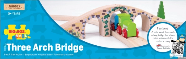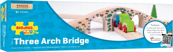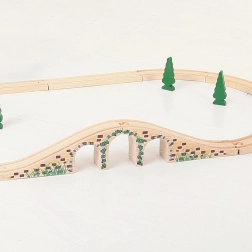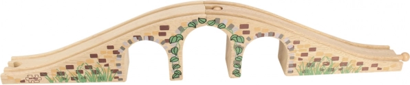 Questo elegante ponte a tre archi è il complemento perfetto per qualsiasi ferrovia in legno. Grazie ai dettagli realistici dei mattoni in pietra e alla finitura liscia, aggiunge al tracciato varietà altimetrica e attrattiva visiva. Permette ai treni di passare sia sopra sia sotto il ponte, creando scenari di gioco divertenti.