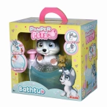 Immergiti nel mondo del divertimento con il Cagnolino Husky Pamper Petz nella vasca. Questo adorabile amico a quattro zampe offre ai bambini molte ore di gioco, durante le quali possono prendersi cura dei loro animali domestici, lavarli e accudirli come se fossero veri.