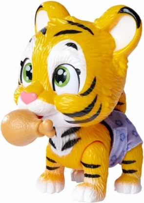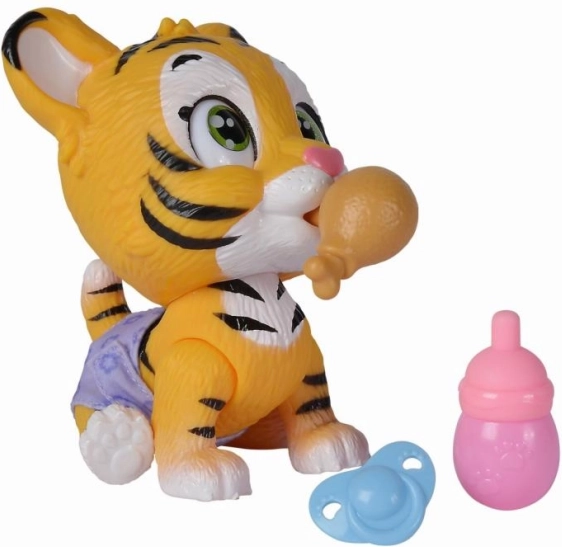 La tigre beve acqua dalla bottiglia inclusa e cambia colore del pannolino – un gioco autentico per i bambini.