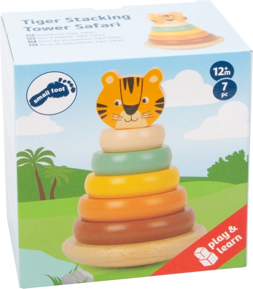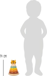 Questa affascinante torre ad incastro con motivo tigre non è solo un bel giocattolo, ma anche un ottimo strumento per lo sviluppo delle abilità dei bambini. Si compone di 7 pezzi, inclusa una base e sei anelli colorati da inserire su un'asta con la testa di tigre. In questo modo i bambini allenano la coordinazione mano-occhio e la comprensione delle forme.