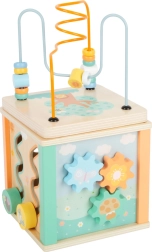 Scopri il cubo motorico in legno universale che sviluppa la motricità fine, il pensiero logico e il riconoscimento di forme e colori. Offre diverse attività: labirinto di perline, inserimento di forme, immagini girevoli e ingranaggi. Grazie al design compatto e alla possibilità di ruotare e inserire il coperchio all'interno, fa risparmiare spazio nella cameretta dei bambini.