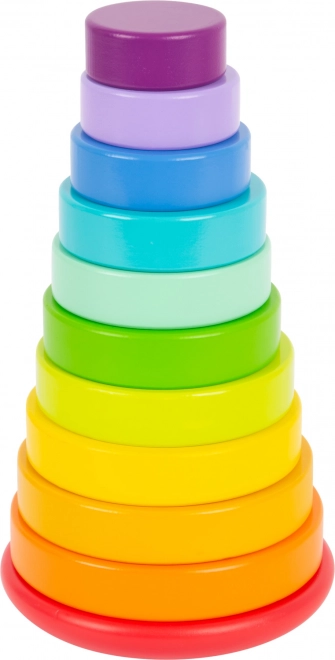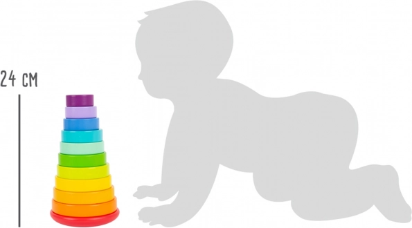 Con dieci dischi variopinti e un piolo su una base arrotondata, questa torre favorisce lo sviluppo delle abilità motorie e il riconoscimento dei colori.