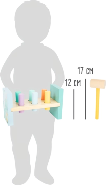 Questo gioco è progettato per sviluppare la motricità fine e la coordinazione occhio-mano dei bambini. I pioli colorati e il piccolo martello li invogliano a giocare migliorando forza e coordinazione.