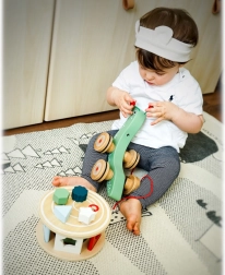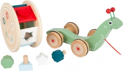 Presentiamo una simpatica chiocciola di legno con corda, che non solo intrattiene, ma aiuta anche lo sviluppo del vostro bambino. Grazie alla sua leggerezza e alle ruote facili da girare è ideale per i bambini che iniziano a camminare e sostiene la loro coordinazione ed equilibrio. Inoltre, la chiocciola funge da ordinatore con cinque forme diverse, stimolando le abilità cognitive e la motricità fine.