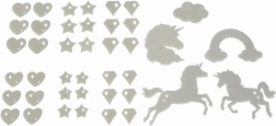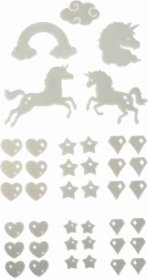 Crea un'atmosfera magica in un attimo. Il set di decorazioni fluorescenti a tema unicorno, dopo l'esposizione alla luce, brilla delicatamente al buio e trasforma ogni cameretta in un regno da fiaba. Gli elementi si fissano facilmente con la gomma adesiva inclusa nella confezione.