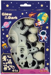 Trasforma la cameretta in un universo infinito. Il set di decorazioni luminose con motivi di stelle, pianeti, razzo e astronauta si illumina delicatamente dopo l'esposizione alla luce e crea un'atmosfera notturna rilassante. Include 41 pezzi e gomma adesiva per un facile fissaggio su pareti, soffitto e mobili.
