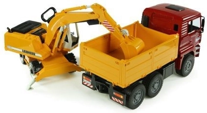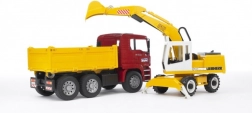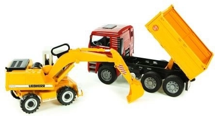 Questo incredibile set da costruzione della Bruder comprende un camion MAN TGA con pneumatici morbidi e un cassone ribaltabile pratico. Inoltre, troverai una scavatrice funzionante Liebherr, caratterizzata da stabilizzatori, pneumatici profilati e una cabina rotante su 360°. Il prodotto è ben lavorato in Germania con materiali resistenti.