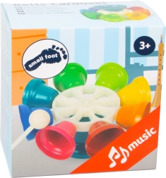 Questo set musicale di qualità del marchio small foot è ideale per il primo approccio a melodia e ritmo. Ognuno dei 8 campanelli colorati è accordato su una nota diversa, così i bambini distinguono facilmente l’altezza dei suoni e possono suonare semplici canzoncine seguendo i colori.