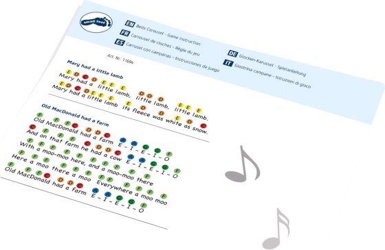 Il set include una bacchetta e spartiti codificati a colori con otto brani famosi, come “Nella vecchia fattoria”, “Jingle Bells” o “Brilla, brilla, stellina”. Suonare i campanelli sviluppa la percezione musicale, la motricità e favorisce la concentrazione – perfetto per suonare a casa e per l’uso in scuole dell’infanzia e primo ciclo della scuola primaria.