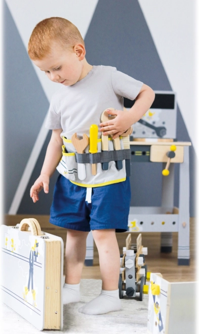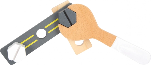 Gli attrezzi in questo set sono realizzati in legno e plastica resistenti, garantendo una lunga durata e sicurezza durante il gioco.