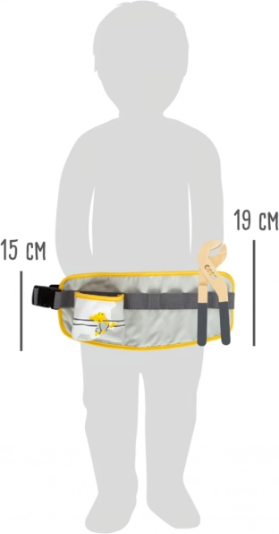 La cintura per bambini con attrezzi Miniwob è perfettamente adattabile e permette un fissaggio sicuro grazie alla fibbia a scatto. Questa giocosa cintura include: