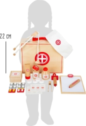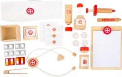 Kit medico per bambini Small Foot è la scelta ideale per i piccoli medici e dottoresse che vogliono essere attrezzati per le visite ai pazienti. Questa valigetta contiene tutti gli strumenti medici essenziali, interamente in legno e confezionata nei classici colori bianco-rosso.