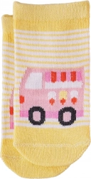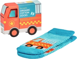 Adorabili calzini per bambini in cotone organico che offrono comfort e uno stile giocoso. A scelta allegri motivi di veicoli (auto, camion dei pompieri, furgoncino del gelato o camion) e morbido bordo a costine che assicura un’ottima tenuta sul piedino. Un’opzione ecologica ideale per la pelle sensibile dei più piccoli.