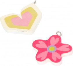 Cinque colori, forme diverse e tre allegri ciondoli permettono di creare braccialetti e collane originali secondo la fantasia.