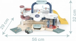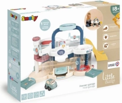 Smoby Little il mio primo garage offre ai bambini innumerevoli ore di divertimento con molti elementi interattivi come un fantastico ascensore, un autolavaggio con spazzole rotanti, un eliporto e uno scivolo.