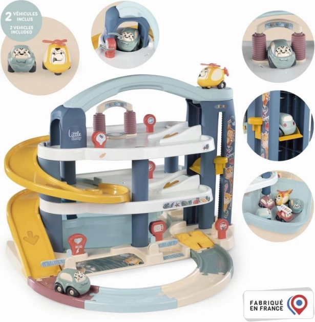 Divertiti con il garage Maxi per bambini di Little Smoby a tre livelli! Questo robusto giocattolo include un autolavaggio, un ascensore, una macchinina e un elicottero, garantendo innumerevoli ore di gioco gioioso per i tuoi bambini.