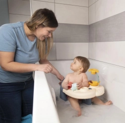 - Il seggiolino con giocattoli, come il fiore annaffiatoio, la tazza per l'acqua e il pesce spruzzante, sviluppa le abilità manuali e l'immaginazione dei bambini.
